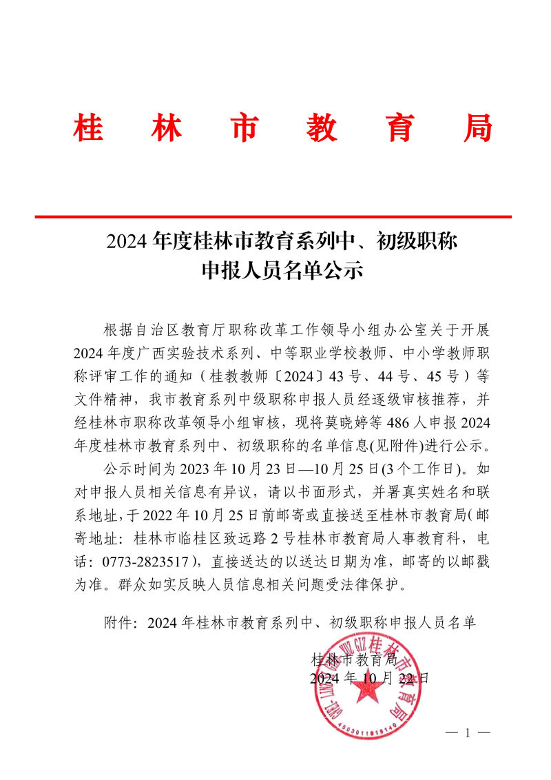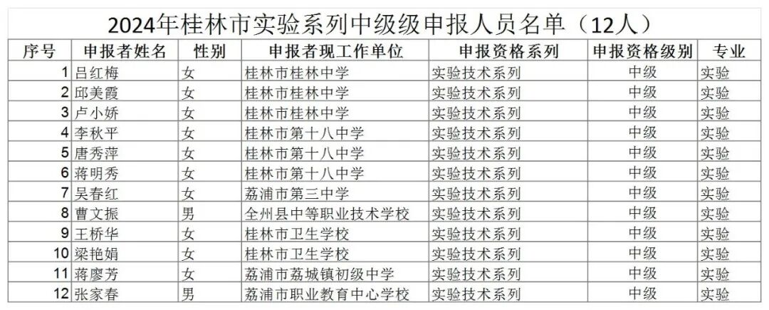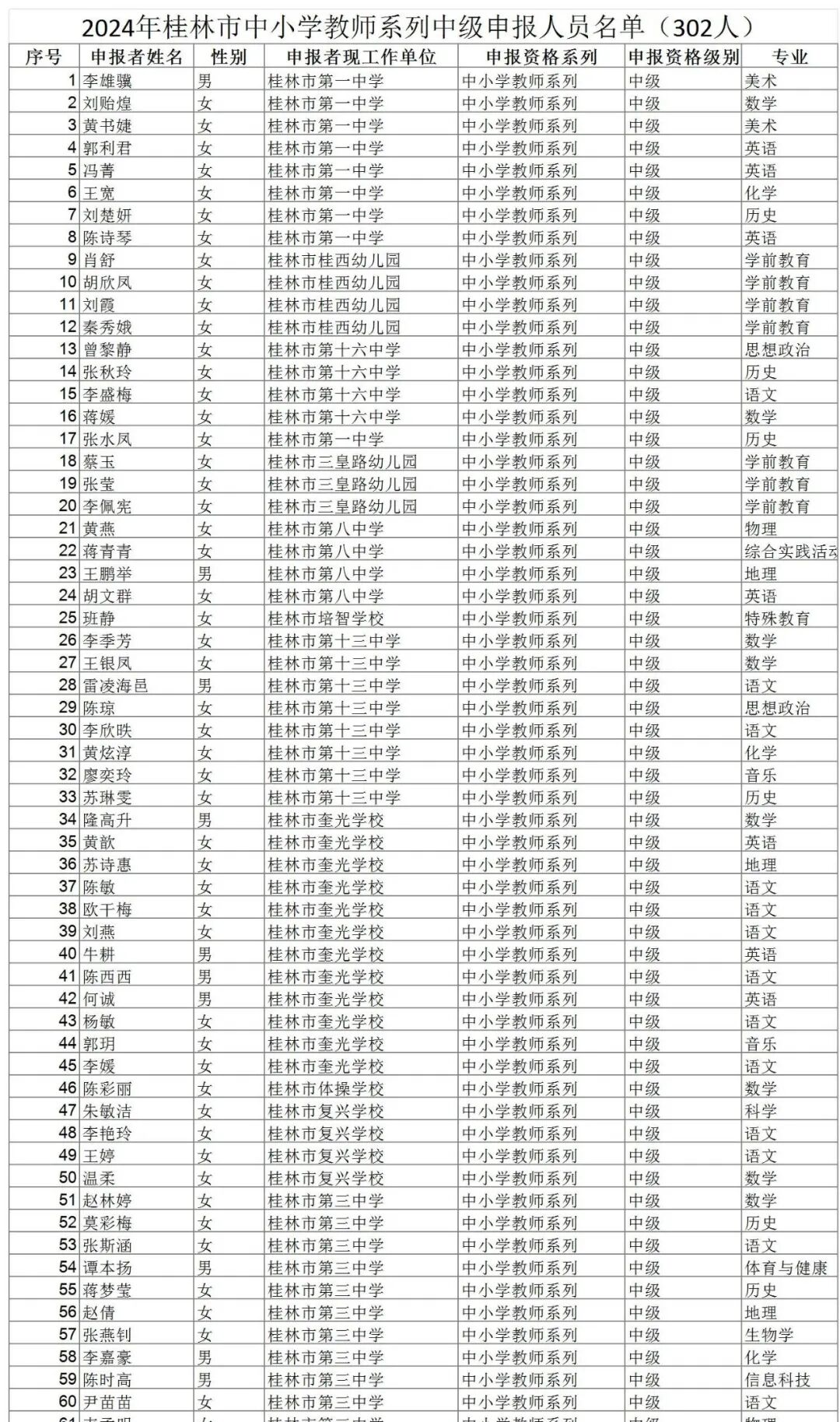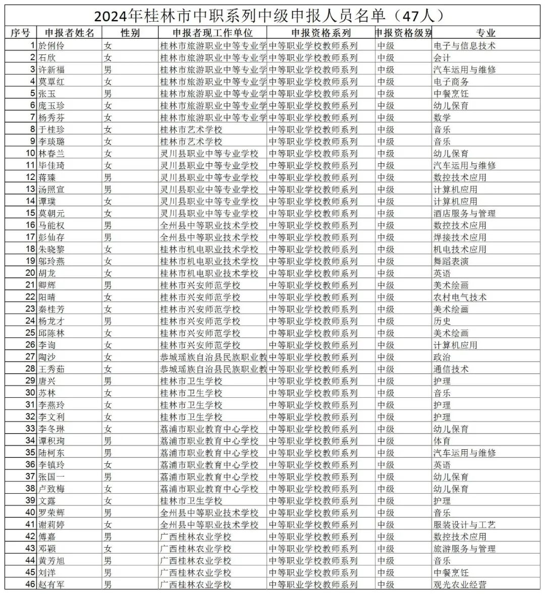 重要公示!2024 年度桂林市教育系列中初级职称申报人员名单来袭