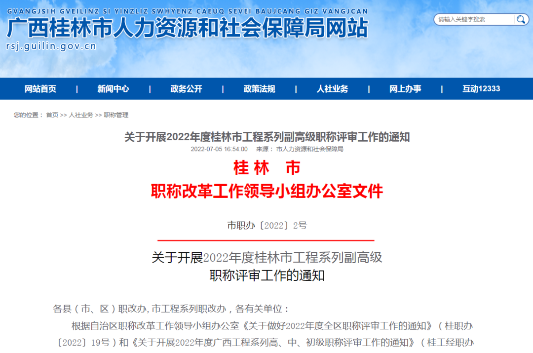 桂林人社局 | 2022年桂林市工程系列副高级职称评审开始啦!6~7月为个人准备和申报阶段